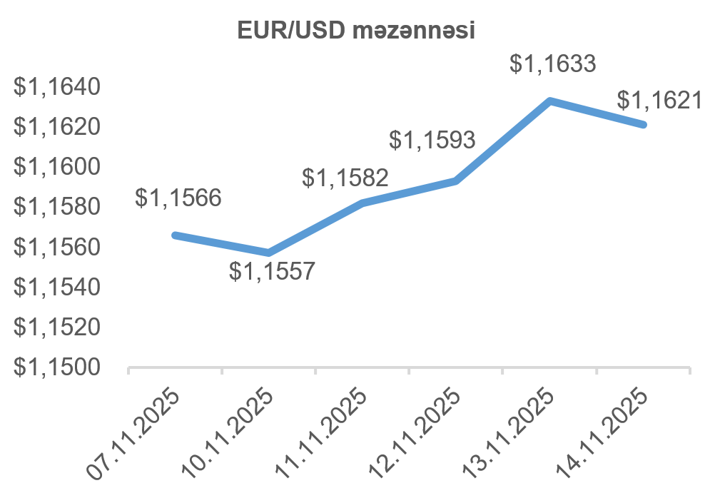 Avrozonanın “ZEW” İqtisadi Gözləntilər İndeksinin noyabr ayı üçün göstəricisi proqnozları üstələmiş, əvvəlki aya nisbətən 2,3 bənd artaraq 25 bəndə yüksəlmişdir. Qeyd edək ki, bu indeks analitiklərin növbəti 6 ay ərzində iqtisadiyyat barədə nikbinlik səviyyəsini ölçür və mənfi 100 (bütün analitiklər iqtisadiyyatın pisləşəcəyini gözləyir) ilə 100 (bütün analitiklər yaxşılaşma gözləyir) arasında dəyişir. Əlavə olaraq, ABŞ-da hökumətin fəaliyyətinə davam etməsinə baxmayaraq, oktyabr ayı üçün bəzi makroiqtisadi göstəricilərin dərc olunmasındakı qeyri-müəyyənlik fonunda avro ABŞ dollarına qarşı dəyər qazanmışdır.