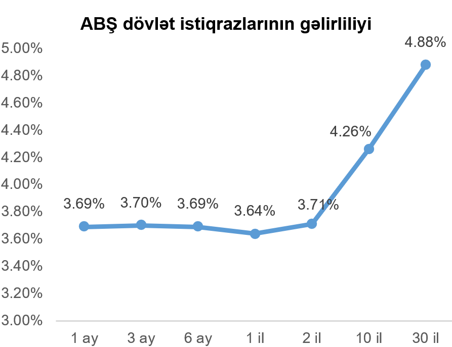 Geridə qoyduğumuz dövr ərzində gəlirlilik əyrisinin 6 aya qədərki tədavül müddətləri üzrə gəlirlilikdə artım, 6 ay və daha çox müddətlər üzrə isə azalma müşahidə olunmuşdur. Vacib istinad göstəricisi (bençmark) kimi istifadə olunan 10 il tədavül müddətli ABŞ dövlət istiqrazının gəlirliliyi ötən həftəyə nəzərən 0,05 faiz bəndi azalaraq 4,26% təşkil etmişdir.