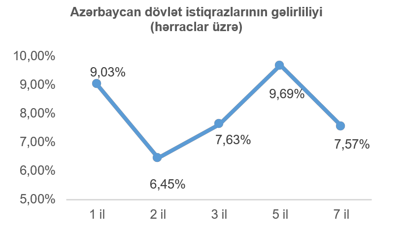 14 oktyabr 2025-ci il tarixində Bakı Fond Birjasında tədavül müddəti 2 il olan dövlət ortamüddətli istiqrazlarının yerləşdirilməsi üzrə hərrac keçirilmişdir. Hərracda 6 investor iştirak etmiş və tələb təklifdən 227% çox olmuşdur. Maliyyə Nazirliyinin qərarına əsasən kəsmə gəlirlilik 6,50% olaraq müəyyən edilmiş, alış sifarişlərinin böyük hissəsi (70%) daha yuxarı gəlirliliklə təqdim edildiyindən hərrac nəticəsində təmin edilməmişdir. Ümumilikdə, təmin edilmiş sifarişlər üzrə ortaölçülmüş gəlirlilik 6,45% təşkil etmişdir ki, bu da əvvəlki analoji hərracın nəticəsi ilə müqayisədə 0,5137 faiz bəndi az olmuşdur. Qeyd edək ki, 21 oktyabr 2025-ci il tarixində Bakı Fond Birjasında tədavül müddəti 3 il olan dövlət ortamüddətli istiqrazlarının yerləşdirilməsi üzrə hərrac keçiriləcəkdir. Hərraca çıxarılacaq istiqrazların həcmi 20 milyon manat təşkil edəcəkdir.