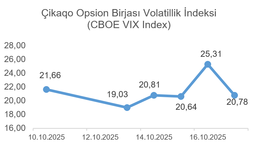 Həftənin digər maraq cəlb edən bir məqamı bir sıra şirkətlərin üçüncü rüb üzrə maliyyə hesabatlarını açıqlaması olmuşdur. “Taiwan Semiconductor Manufacturing Company” (ticarət simvolu: TSM) şirkətinin qazancını keçən ilə nəzərən 40%-ə yaxın artırması, süni intellekt sahəsinə inamı gücləndirmiş, “Goldman Sachs” (ticarət simvolu: GS), “JPMorgan” (ticarət simvolu: JPM), “Bank of America” (ticarət simvolu: BAC), “Charles Schwab” (ticarət simvolu: SCHW), “Citigroup” (ticarət simvolu: C) kimi şirkətlərin qazanclarının gözləniləndən yuxarı gəlməsi isə böyük maliyyə institutlarının iqtisadi çətinliklərə dayanıqlı olduğunu göstərmişdir. Buna baxmayaraq, orta ölçülü maliyyə şirkətləri problemlərlə üzləşməkdədir. Zəif ödəmə qabiliyyətli şəxslərə avtomobil kreditləri (subprime loans) verən “Tricolor” və avtomobil parçaları satan “First Brands” şirkətlərinin keçən ay yaşanmış iflaslarına əlavə olaraq, bu həftə regional banklar olan “Zions” (ticarət simvolu: ZION) və “Western Alliance” (ticarət simvolu: WAL) şirkətlərinin də kreditlərin geri alınmasında problem ilə üzləşməsi, 2008-ci il maliyyə böhranını xatırlatmış, bazardakı narahatlığı artırmışdır. İnvestorların narahatlığının artması amili Çikaqo Opsiyon Birjası Volatillik İndeksinin (CBOE VIX Index) dinamikasında öz əksini tapmışdır.