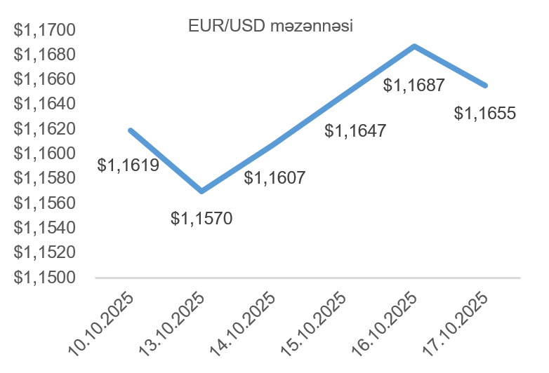 Ötən həftə Almaniyanın istehlak səbəti indeksi keçən aykı illik 2,2%-lik göstəricidən artaraq gözləntilər çərçivəsində 2,4% təşkil etmiş, Avropa mərkəzi bankının faizləri olduğu səviyyədə saxlayacağı fikri möhkəmlənmişdir. Lakin, ötən həftənin çərşənbə axşamı günü Avrozonanın “ZEW” İqtisadi Gözləntilər İndeksi 26,1-dən 22,7-yə düşərək beş ayın ən aşağı səviyyəsinə enmiş və 30,2-lik proqnozların xeyli altında qalmış, avronun dəyəri həftəiçi dollara nisbətdə geriləmişdir. Qeyd edək ki, bu indeks analitiklərin növbəti 6 ay ərzində iqtisadiyyat barədə nikbinlik səviyyəsini ölçür və -100 (bütün analitiklər iqtisadiyyatın pisləşəcəyini gözləyir) ilə 100 (bütün analitiklər yaxşılaşma gözləyir) arasında dəyişir. Buna baxmayaraq, həftənin önəmli geosiyasi məqamları olan ABŞ hökumətinin fəaliyyətinin hələ də bərpa edilməmiş olması, ABŞ-da faizlərin azaldılması ehtimalının möhkəmlənməsi və ABŞ-Çin ticarət müharibəsi, ABŞ dollarının avroya qarşı aşağı yönümlü hərəkətə davam etməsinə səbəb olmuşdur.