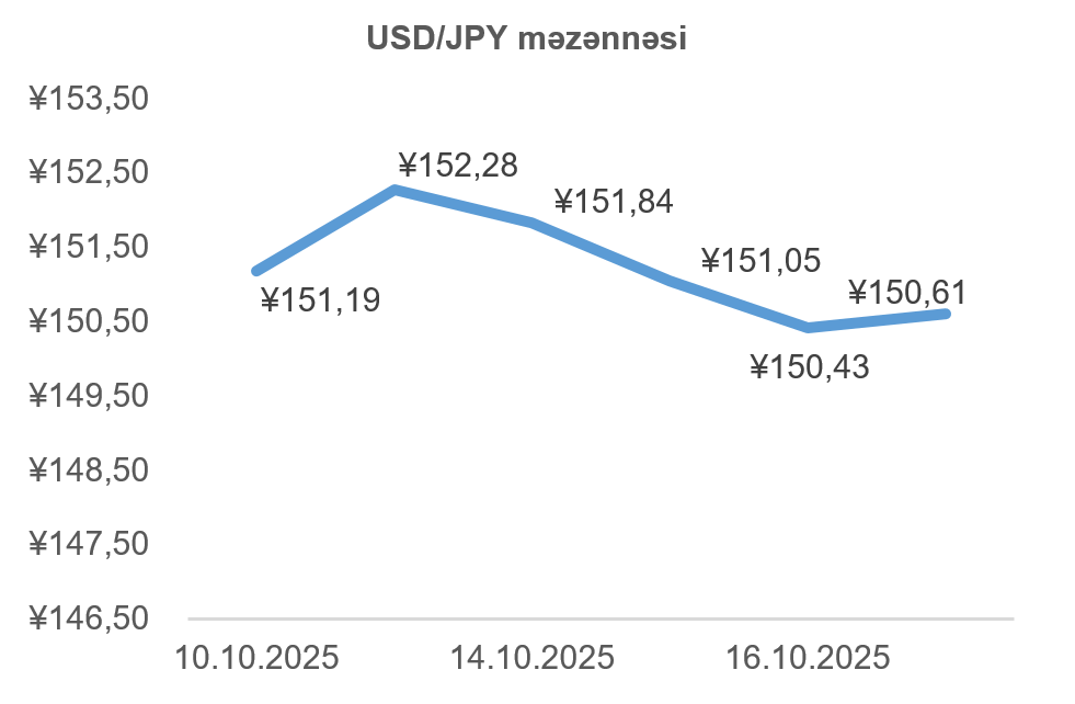 Yaponiyada avqust ayı üçün sənaye istehsalı aylıq əsasda 1,5% azalaraq iyuldaki 1,2%-lik enişi geridə qoymuşdur. ABŞ-la ticarətin qeyri-müəyyənliyi, zəif tələbat və avtomobil və polad istehsalı kimi əsas sahələrdə davam edən durğunluq bu zəifliyin əsas səbəbləri kimi göstərilir. Kapital xərclərini əks etdirən avadanlıq sifarişləri göstəricisi də avqustda 1,6%-ə düşmüş və gözləntiləri qarşılamamışdır. Bu zəif fundamental göstəricilərə baxmayaraq, Yaponiya Bankının inflyasiya proqnozlara uyğun davam edərsə, faiz artımlarını davam etdirəcəyi barədə açıqlaması ilə bazarda növbəti faiz artımı ehtimalı yenidən gündəmə gəlmişdir. Bundan əlavə, Yaponiya maliyyə nazirinin inflyasiyaya qarşı yeni iqtisadi strategiyanın zəruriliyini vurğulamasından sonra yen dollar qarşısında möhkəmlənmişdir. Beləliklə, ABŞ mərkəzi bankının faizləri aşağı salarkən Yaponiyada faizlərin yuxarı səviyyədə qalması, dolların qiymətinə mənfi təsir göstərmiş, həmçinin, ABŞ və Çin arasında davam edən ticari mübarizə və qarşılıqlı məhdudiyyətlər fonunda ABŞ dollarının Yaponiya yeninə olan məzənnəsi həftə ərzində aşağı yönlü hərəkət etmişdir.