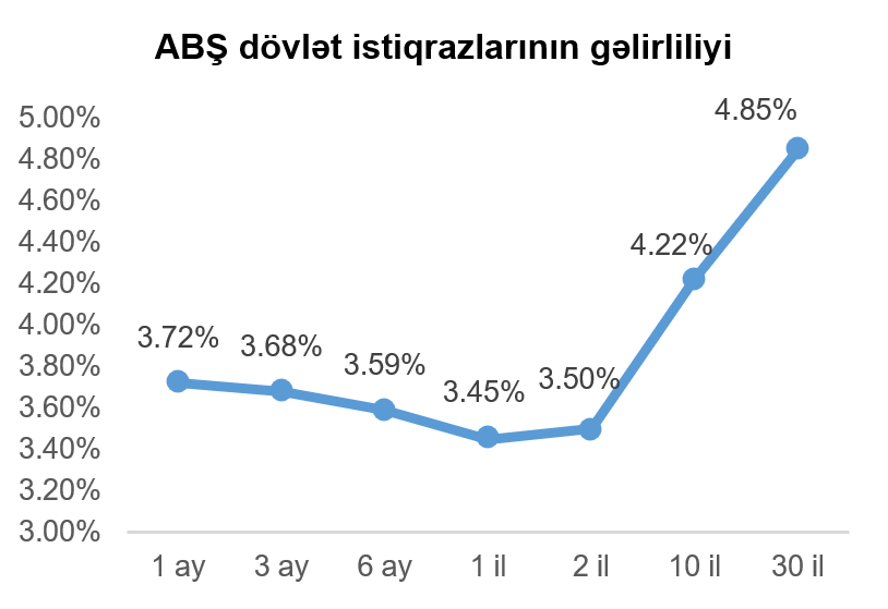 Son həftə ərzində ABŞ dövlət istiqrazlarının gəlirlilikləri azalmışdır. Vacib istinad göstəricisi (bençmark) kimi istifadə olunan 10 il tədavül müddətli ABŞ dövlət istiqrazının gəlirliliyi həftənin sonuna 0,04 faiz bəndi azalaraq 4,22% təşkil etmişdir.