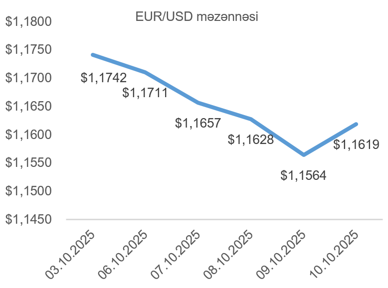 Ötən həftə Avrozonadakı makroiqtisadi göstəricilər və siyasi qeyri-müəyyənlik ABŞ dolllarının avroya nisbətdə dəyər qazanmasına səbəb olmuşdur. Belə ki, yeni fransız baş naziri Sebastien Lekornu, vəzifəyə gəldikdən cəmi bir ay və nazirlər kabinetini təyin etdikdən cəmi 14 saat sonra, bazar ertəsi günü istefa vermişdir. Avrozonanın ikinci ən böyük iqtisadiyyatında 21 ay ərzində 5 baş nazirin dəyişməsi, büdcə kəsirinin Avropa İttifaqının 3%-lik limitindən iki dəfə çox olması və ÜDM-ə nisbətdə dövlət borcunun 115%-ə yaxınlaşması fonunda, reytinq agentlikləri Fransanın suveren kredit reytinqi ilə bağlı yeni xəbərdarlıqlar etmişdir. Həmçinin, Almaniyada sənaye məhsullarının istehsalı avqust ayında ardıcıl olaraq 4.3% azalmış, xüsusilə avtomobil istehsalında kəskin eniş müşahidə olunmuşdur. Ticarət balansının da nəzərə çarpacaq şəkildə artması, Almaniyanın ixrac yönümlü iqtisadiyyatında geriləmə qorxularını artırmışdır. Yuxarıda qeyd olunan xəbərlər fonunda ötən həftə ABŞ dolları avroya qarşı dəyər qazanmışdır.