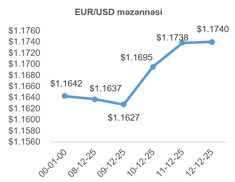 Avropa mərkəzi bankının sədri Kristin Laqardın ötən həftəki çıxışına əsasən, mərkəzi bankın dekabrdakı makroiqtisadi proqnozlar hesabatında, 2026-cı il üçün ÜDM-nin böyüməsi göstəricisi təxminlərinin daha yuxarı olacağını, hal-hazırkı pul-kredit siyasətinin isə yerində olduğunu bildirmişdir. Bu da investorlar tərəfindən 18 dekabrda Avropa mərkəzi bankının faizləri indiki səviyyəsində saxlayacağı gözləntilərini artırmışdır. ABŞ-da isə mərkəzi bankın idarə heyətinin 10 dekabr görüşündə faizlərin endirməsi ilə iki iqtisadi bölgə arasındakı faiz dərəcəsi fərqi böyümüş, nəticə olaraq avro ABŞ dollarına qarşı dəyər qazanmışdır.