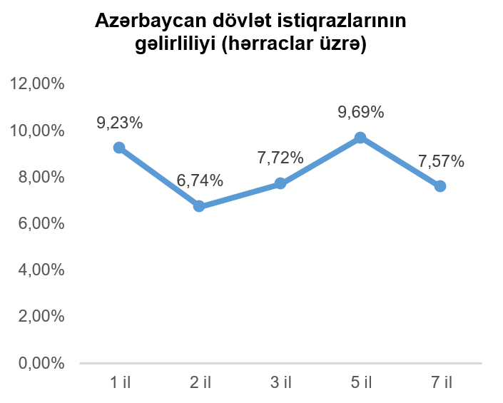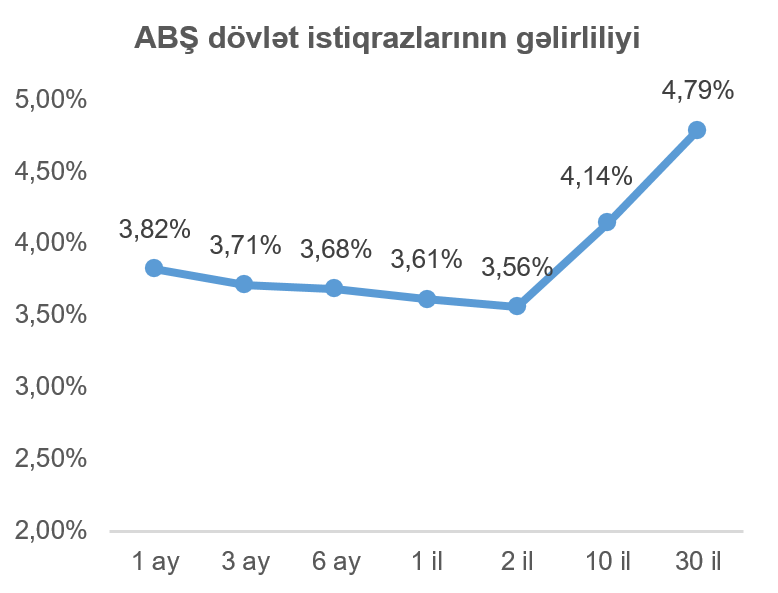 Geridə qoyduğumuz həftə ərzində 1 ilə qədər tədavül müddəti olan ABŞ dövlət istiqrazlarının gəlirlilikləri azalmış, 1 ildən daha artıq tədavül müddəti olan dövlət istiqrazlarının gəlirliliklərində isə artım müşahidə olunmuşdur. Vacib istinad göstəricisi (bençmark) kimi istifadə olunan 10 il tədavül müddətli ABŞ dövlət istiqrazının gəlirliliyi həftənin sonuna bir həftə əvvələ nisbətdə 0,12 faiz bəndi artaraq 4,14% təşkil etmişdir
