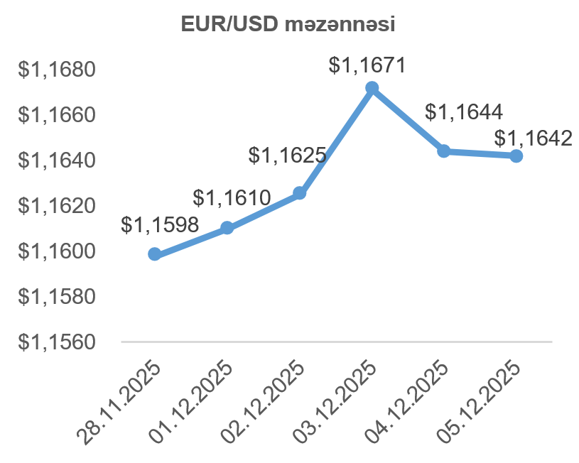 Ümumilikdə, son həftə ərzində WTI markalı Amerika xam neftinin 2026-cı ilin yanvar fyuçerslərinin qiyməti 2,61%, Brent markalı Avropa neftinin növbəti ilin fevral fyuçerslərinin qiyməti isə 2,20% artmışdır.