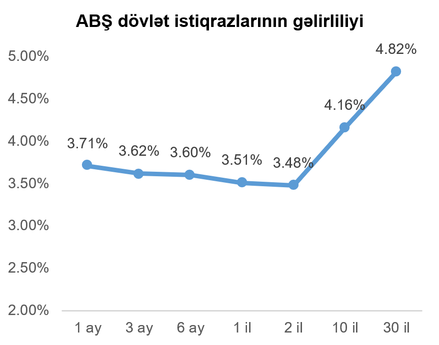 Geridə qoyduğumuz həftə ərzində demək olar ki bütün tədavül müddətləri üzrə dövlət istiqrazlarının gəlirliliklərində azalma müşahidə olunmuşdur. Vacib istinad göstəricisi (bençmark) kimi istifadə olunan 10 il tədavül müddətli ABŞ dövlət istiqrazının gəlirliliyi həftənin sonuna bir həftə əvvələ nisbətdə 0,03 faiz bəndi azalaraq 4,16% təşkil etmişdir.