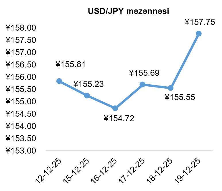 Yaponiyanın istehlakçı qiymət indeksinin (CPI) illik miqyasda dəyişimi noyabrda ötən aya nəzərən 0,1% azalaraq 2,9%, volatil qida və enerji qiymətləri istisna olunan baza istehlakçı qiymət indeksi (core CPI) isə 3% təşkil etmişdir. Lakin bu azalma Yaponiya mərkəzi bankının 19 dekabrdakı faiz qərarına təsir etməmiş, Yaponiyanın uçot dərəcəsi 25 baza bəndi artırılaraq son 30 ilin ən yüksək səviyyəsi olan 0,75 faiz bəndinə çatmışdır. Yaponiya mərkəzi bankının idarə heyətinin sədri Kazuo Ueda iqtisadi şəraitin imkan verəcəyi təqdirdə, faiz dərəcəsi artımlarının davam edəcəyini bildirmişdir. Lakin o, həmçinin, ölkə iqtisadiyyatı üçün neytral faiz dərəcəsinin qeyri-müəyyən olduğunu, buna görə də mərkəzi bankın iqtisadi dəyişikliklərə çevik reaksiya verməsinin önəmini də vurğulamışdır. Bu çıxış, növbəti faiz qərarlarının artım yönündə olmayacağı ilə bağlı investorlarda narahatlıq yaratmış, nəticə olaraq ötən həftə Yaponiya yeni ABŞ dollarına qarşı dəyər itirmişdir.
