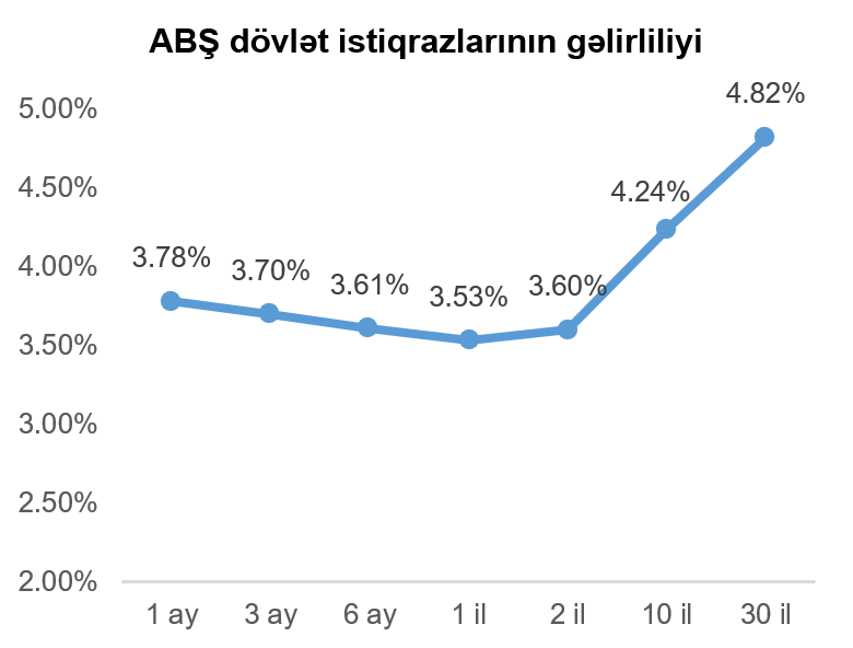 Geridə qoyduğumuz həftə ərzində ABŞ dövlət istiqrazlarının gəlirlilikləri nisbətən sabit qalmışdır. Vacib istinad göstəricisi (bençmark) kimi istifadə olunan 10 il tədavül müddətli ABŞ dövlət istiqrazının gəlirliliyi həftənin sonuna bir həftə əvvələ nisbətdə dəyişməyərək 4,24% təşkil etmişdir.