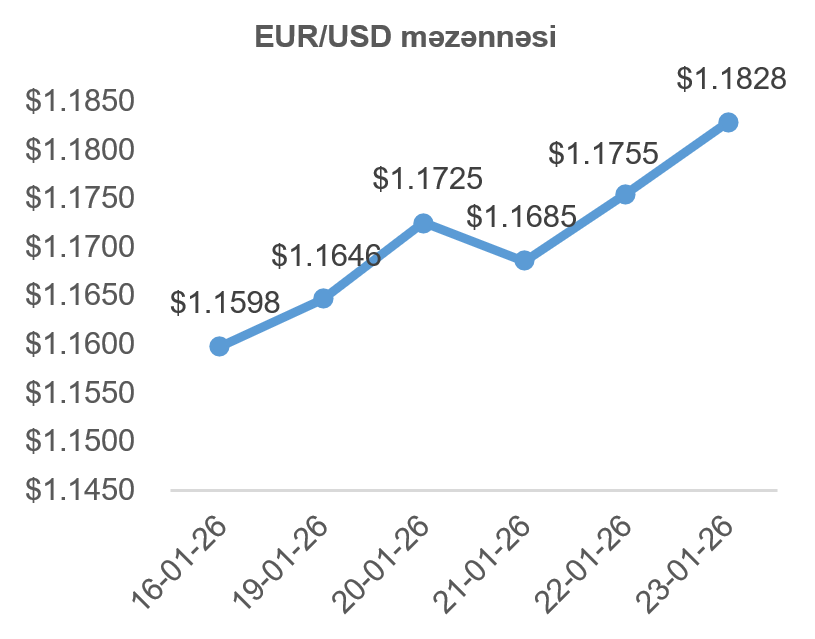ABŞ prezidenti Donald Trampın Qrenlandiyanın ABŞ ərazisinə çevrilməsi ilə bağlı təkliflərindən hələ də imtina etməməsi, əvəzində isə bununla bağlı danışıqları sürdürdüyünü açıqlaması, ABŞ kapital bazarlarına, və nəticə olaraq, ABŞ dollarına olan tələbin azalmasına gətirib çıxarmış, qarnəticə olaraq, ötən həftə ərzində avro ABŞ dollarına qarşı dəyər qazanmışdır.
