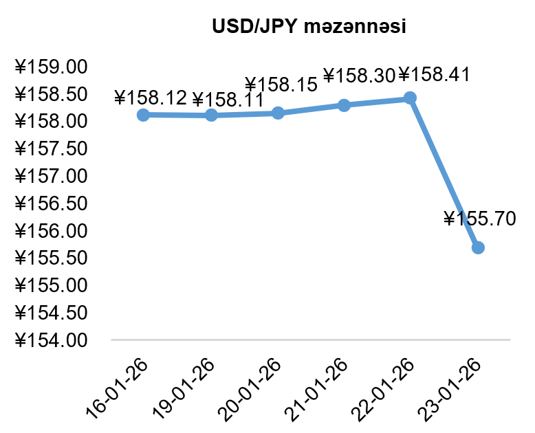 Ötən həftə Yaponiyada istehlakçı qiyməti indeksi (CPI) üzrə dekabr ayı üzrə göstərici açıqlanmış, illik miqyasda qiymətlər 2,1% artmışdır. Əlavə olaraq, Yaponiya mərkəzi bankının idarə heyətinin faiz qərarı görüşündə faizlər sabit saxlanılmış, bu da Yaponiya yeninin dəyərinin həftə ərzində azalmasına davam etməsinə şərait yaratmışdır.