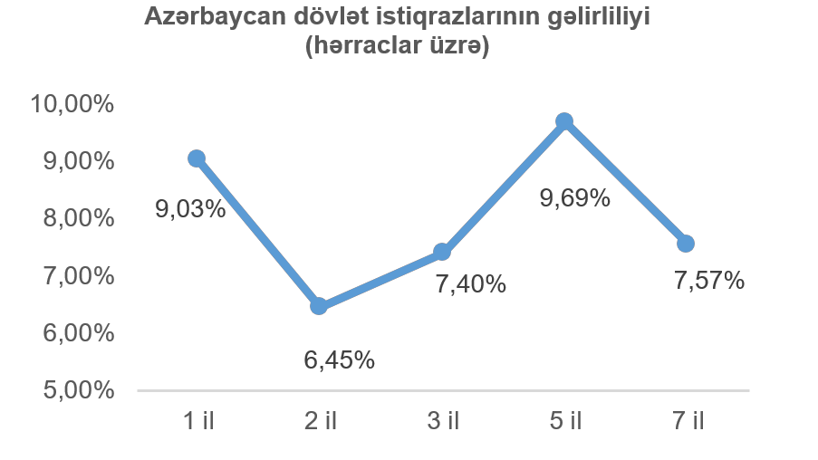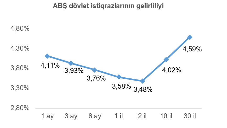 Geridə qoyduğumuz həftə ərzində qısamüddətli ABŞ dövlət istiqrazlarının gəlirlilikləri azalmış, ortamüddətli ABŞ dövlət istiqrazlarının gəlirlilikləri artmış, uzunmüddətli ABŞ dövlət istiqrazlarının gəlirlilikləri isə əhəmiyyətli dərəcədə dəyişməmişdir. Vacib istinad göstəricisi (bençmark) kimi istifadə olunan 10 il tədavül müddətli ABŞ dövlət istiqrazının gəlirliliyi həftənin sonuna bir həftə əvvələ nisbət ilə eyni qalaraq 4,02% təşkil etmişdir.