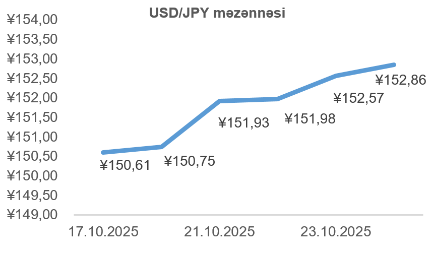 Yaponiyada fiskal genişlənmə tərəfdarı olan, həmçinin, yumşaq (dovish) pul-kredit siyasəti mövqeyi ilə tanınan Sanae Takaiçi ötən çərşənbə axşamı ölkənin yeni baş naziri seçilmişdir. Bu hadisə dolların yapon yeninə qarşı möhkəmlənməsinə səbəb olmuşdur. Ötən həftənin cümə günü Yaponiyada açıqlanan cari ilin sentyabr ayı üzrə istehlak qiymətləri indeksi (CPI) bir ay əvvələ nisbətdə illik miqyasda 0,2 faiz bəndi artaraq 2,9% təşkil etmişdir. Bu, may ayından bəri müşahidə edilən ilk artım olmuşdur. Buna baxmayaraq, yeni baş nazirin 92 milyard ABŞ dolları həcmində iqtisadi stimullaşdırma paketi planlaşdırması Yaponiya yeninin ABŞ dollarına qarşı dəyər itirməsinə səbəb olmuşdur. Ümumilikdə, ötən həftə ərzində ABŞ dolları Yaponiya yeninə qarşı dəyər qazanmışdır.