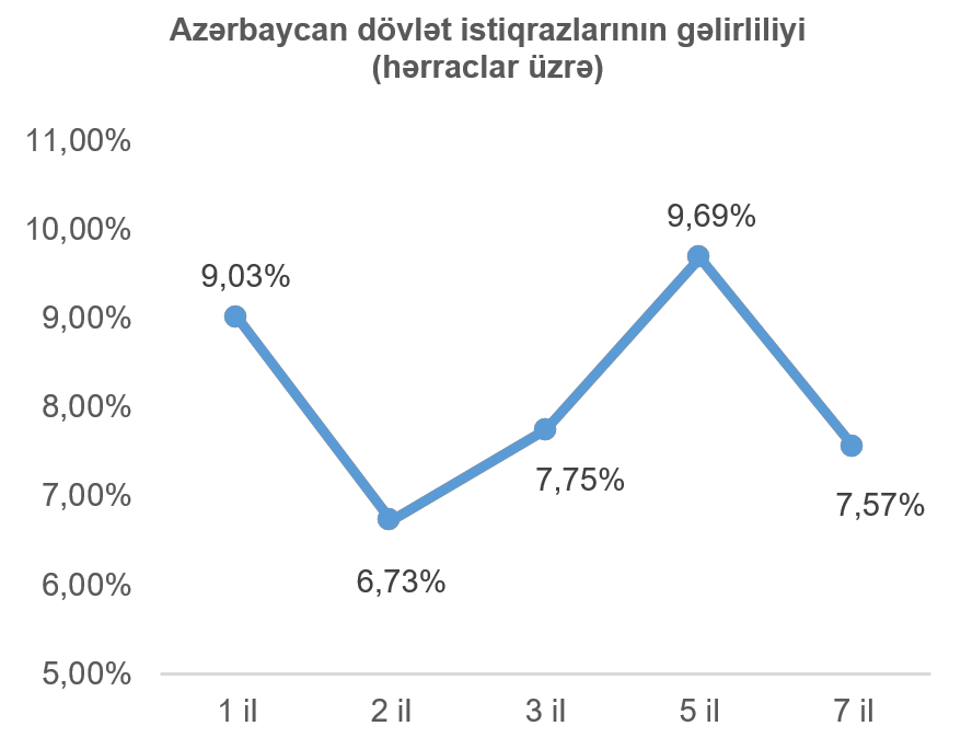 23 sentyabr 2025-ci il tarixində Bakı Fond Birjasında tədavül müddəti 3 il olan dövlət ortamüddətli istiqrazlarının yerləşdirilməsi üzrə hərrac keçirilmişdir. Hərracda 17 investor iştirak etmiş və tələb təklifdən 399% çox olmuşdur. Maliyyə Nazirliyinin qərarına əsasən kəsmə gəlirlilik 7,80% olaraq müəyyən edilmiş, alış sifarişlərinin böyük hissəsi (94%) daha yuxarı gəlirliliklə təqdim edildiyindən hərrac nəticəsində təmin edilməmişdir. Ümumilikdə, təmin edilmiş sifarişlər üzrə ortaölçülmüş gəlirlilik 7,75% təşkil etmişdir ki, bu da əvvəlki analoji hərracın nəticəsi ilə müqayisədə 0,2298 faiz bəndi çox olmuşdur. Qeyd edək ki, 30 sentyabr 2025-ci il tarixində Bakı Fond Birjasında tədavül müddəti 2 il olan dövlət ortamüddətli istiqrazlarının yerləşdirilməsi üzrə hərrac keçiriləcəkdir. Hərraca çıxarılacaq istiqrazların həcmi 20 milyon manat təşkil edəcəkdir.