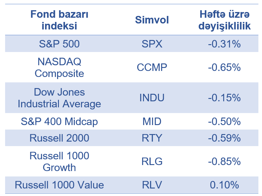 ABŞ-ın ən böyük fond bazarı indeksi olan “S&P 500” həftə ərzində 0,31% azalmışdır.